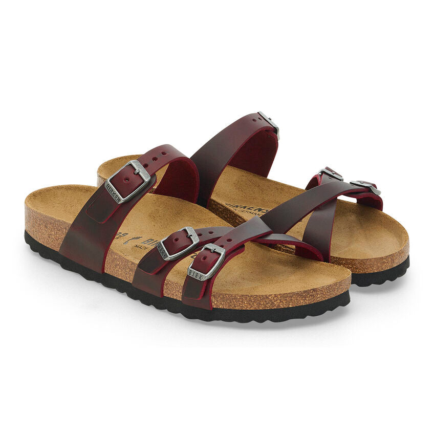 La Franca est l'un des nouveaux modèles de sandales Birkenstock. La silhouette élégante est dotée de trois bretelles réglables pour plus de confort et de sécurité. Les semelles profilées en liège offrent un excellent soutien de la voûte plantaire et en font une sandale vraiment confortable pour presque tous les types de pieds et pour presque tous les événements ou occasions.