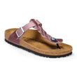 Lancée pour la première fois en 1983, la tong emblématique de Birkenstock, la Gizeh, fête ses 40 ans ! Parfaitement conçu et de style classique. La plupart des femmes adorent cette sandale car elle offre un soutien classique de la voûte plantaire Birkenstock avec une touche de simplicité élégante. La butée est fabriquée en résine flexible, conçue anatomiquement pour s'adapter confortablement entre les orteils et la sangle est dotée d'une boucle pour un ajustement sûr sur votre cou-de-pied. Le choix parfait pour les voyages ou toutes les aventures estivales.