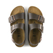 Add a heel strap to our iconic Arizona sandal and you get the Birkenstock Milano – a classic with added stability. The Milano back strap model gives you a secure step in any situation, whether you are at work or at play. Select materials and high-quality workmanship are complemented with the signature comfort of the Birkenstock footbed.