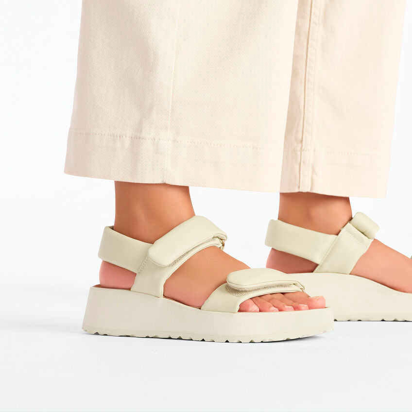 Présentation du Theda de Papillio. Une nouvelle sandale à plateforme contemporaine avec bride arrière. Doté du confort signature que vous connaissez, avec un ascenseur. Des robes d'été aux jeans, portez ces sandales avec tout.